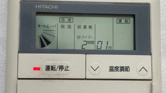 古いエアコンは、風の向きも風量の調節もできない。温度調節は1度刻み。