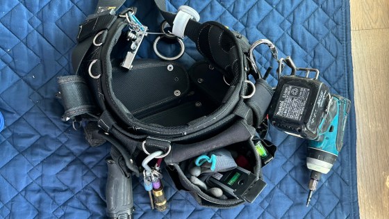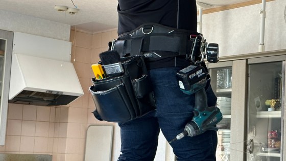 工事に来た人が腰に巻いている道具入れがものすごく重そう。