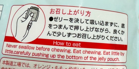 ゼリーを一気に飲み込んで窒息して大変なことになる人がいる。凍らせたものだと一気には冷たくて食べれないのでかなり安全だと思う。