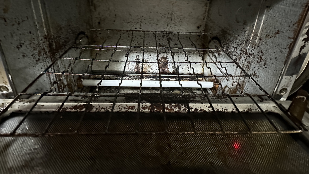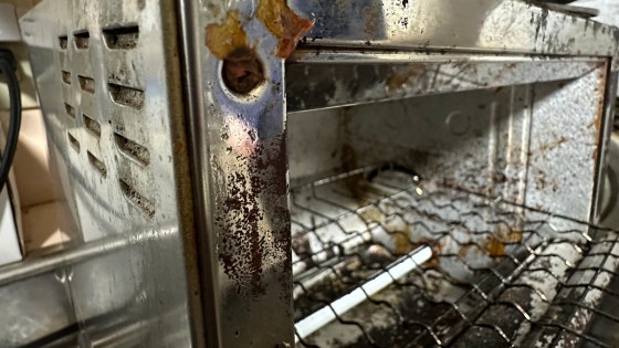 10年以上使って焦げ焦げになってしまったオープントースターの掃除を息子に頼んだ。
