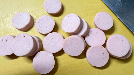 フィルムの皮を剥いて輪切りにする。