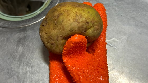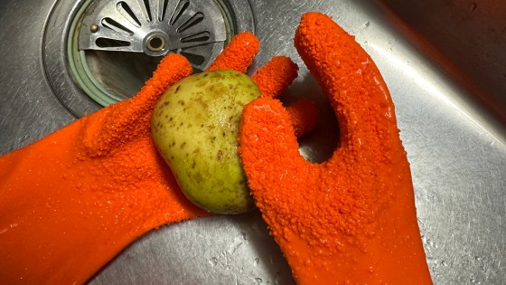 手袋の表面の凸凹でこすりながら根菜などの皮を剥く。