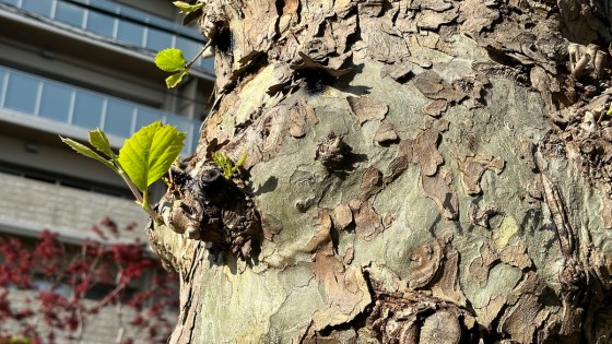 青桐の大木に潜んでいたこの怪獣さんは怖がりで、一刻も早く木々の葉っぱが生えないかと、焦っている。