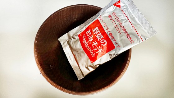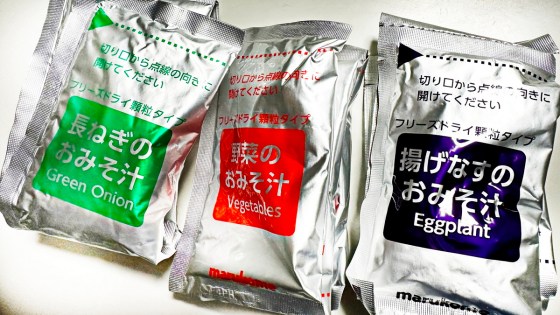 朝のお味噌汁はフリーズドライのものが良いのであるが、何しろ1個当たり100円前後である。