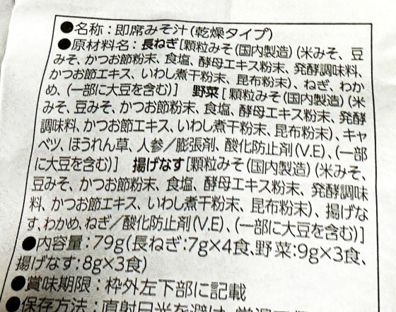具もまあまあ入っている。我が家ではこれに乾燥ネギと乾燥ニンジンを加える。