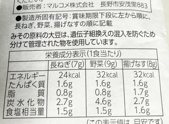 種類は長ネギと野菜と揚げなすの3タイプである。