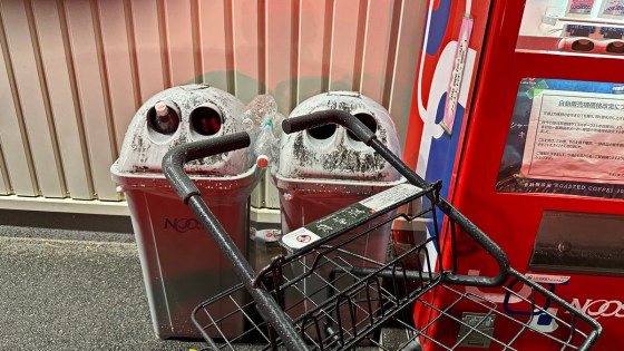 ゴミ箱さんの前にスーパーのカートを置きっぱなしにしているのだ。