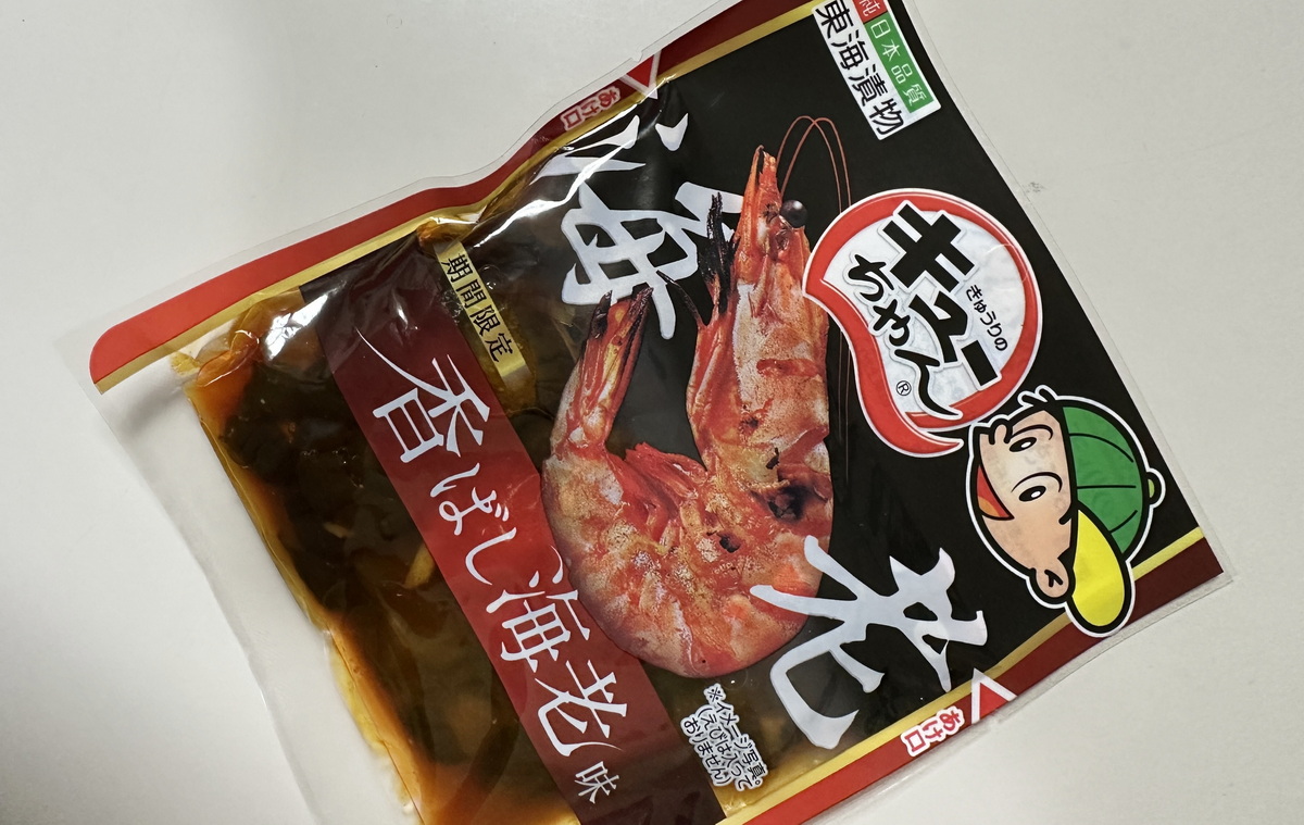 スーパーへ行ってみたら、きゅうちゃんの新商品「キューちゃん香ばし海老味」が出ていたので、早速買って帰る。