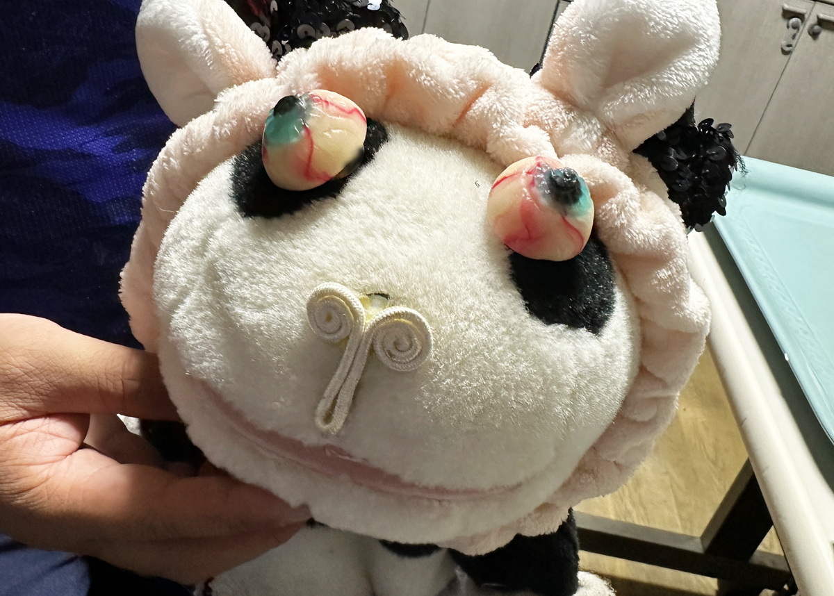 最後はウサピョンの目。一回ずつ記念写真を撮らされる。余程この目が気に入ったらしい。