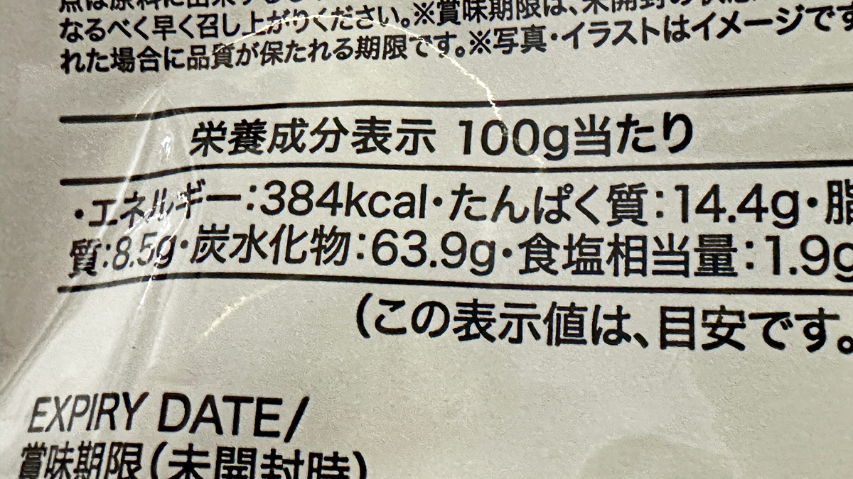 100g9ラム当たり、384㎉だから全量184gだと706.56㎉。これは2人前なので一人分だと354㎉。
