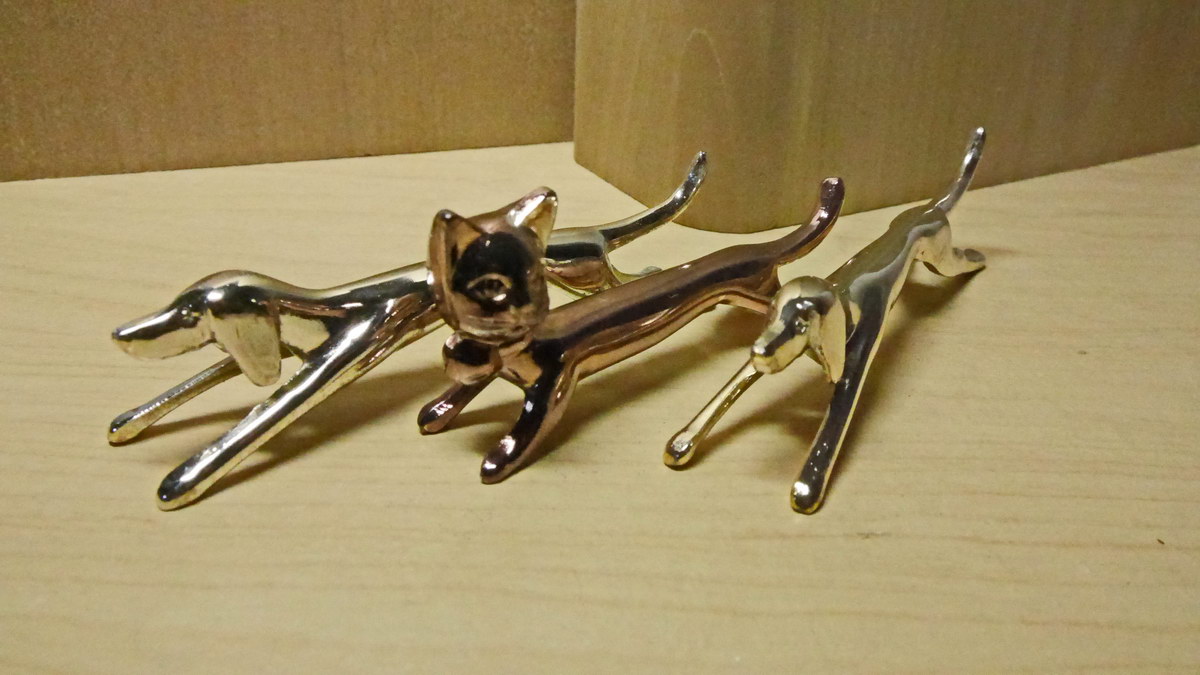 リサイクルショップで買った箸置きのようなもの。3つで108円。汚いナイロン袋に入ってセロテープでぐるぐる巻きにされていたが、持ってみると重いのでおそらく金属だろうと思って買うことにしたのである。 家に帰って開けてみるとピ … Read more